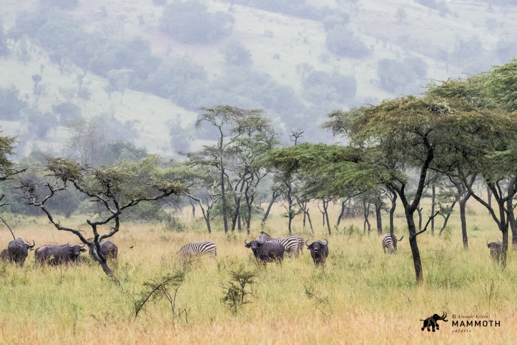 I just love the misty rainy season feel of this photo. Buffalo numbers seem healthy as we encountered numerous herds in the park.
