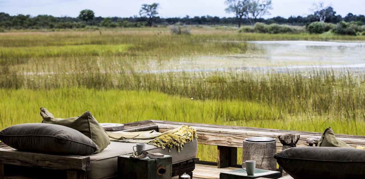 The amazing view from the deck at the luxurious Vumbura Plains North camp (image credit Wilderness Safaris).