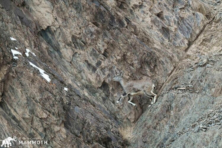The bharal or Himalayan blue sheep is incredibly well adapted to survival in this rocky and cold environment. Here it demonstrates the ability to effortlessly leap from ragged rock to ragged rock.