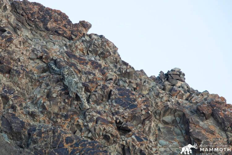 The first time you spot the snow leopard will generally be at some distance, but will be a moment that you will never forget.