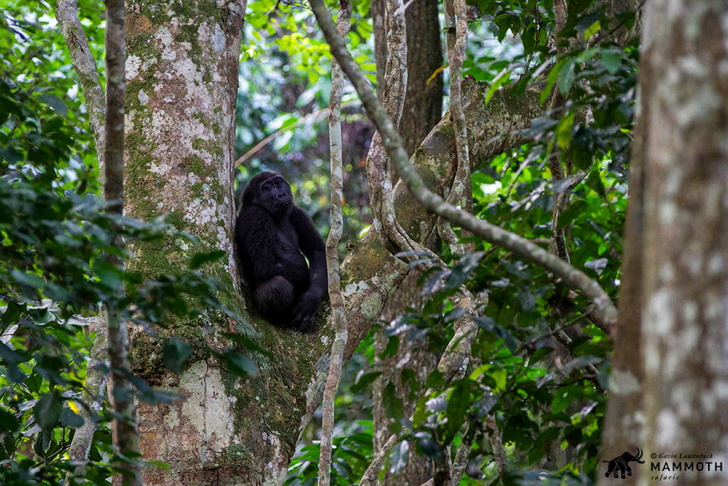 The Western Lowland Gorillas do spend a lot of time in trees and a very good pair of binoculars will most certainly enhance your experience here