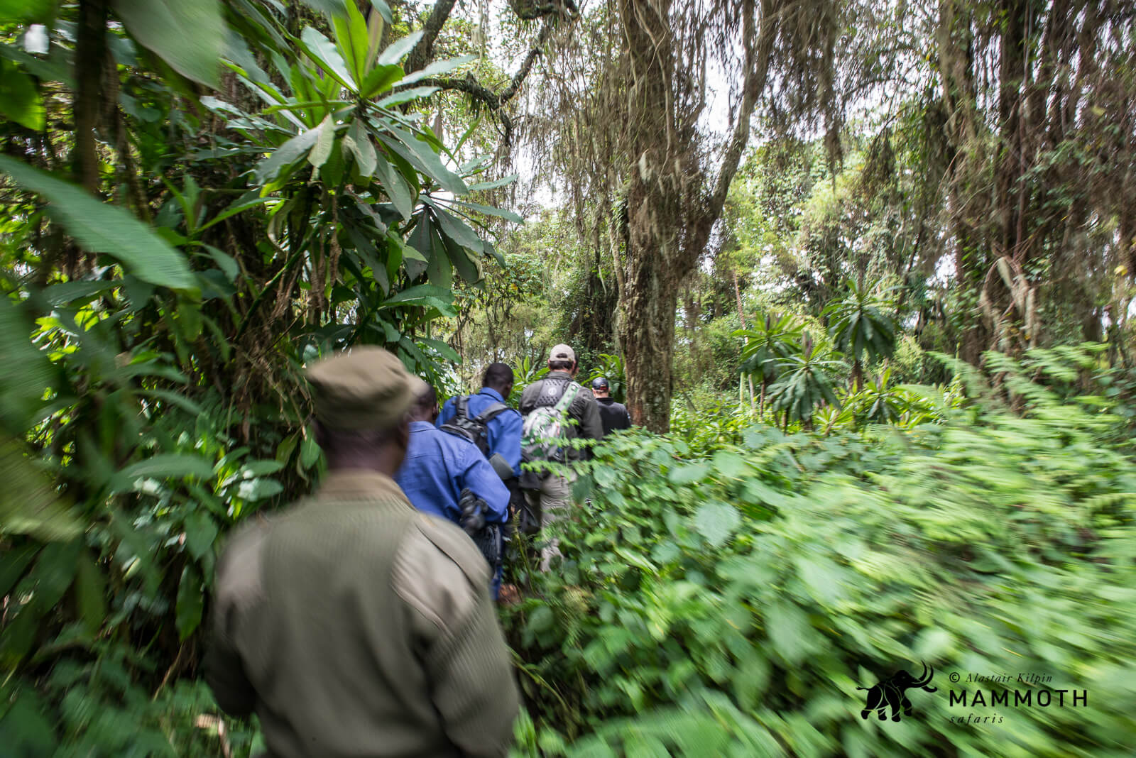 You will trek with your guide, park guards and also porters if you opt to have them assist you. All have good eyes in the forest!