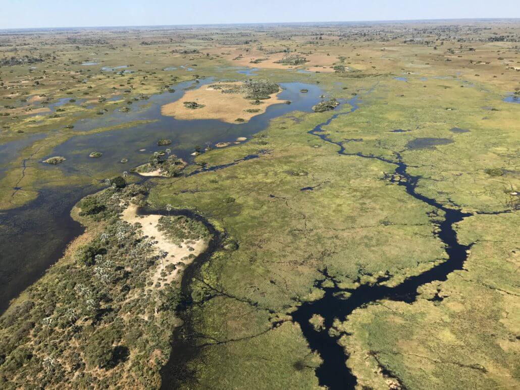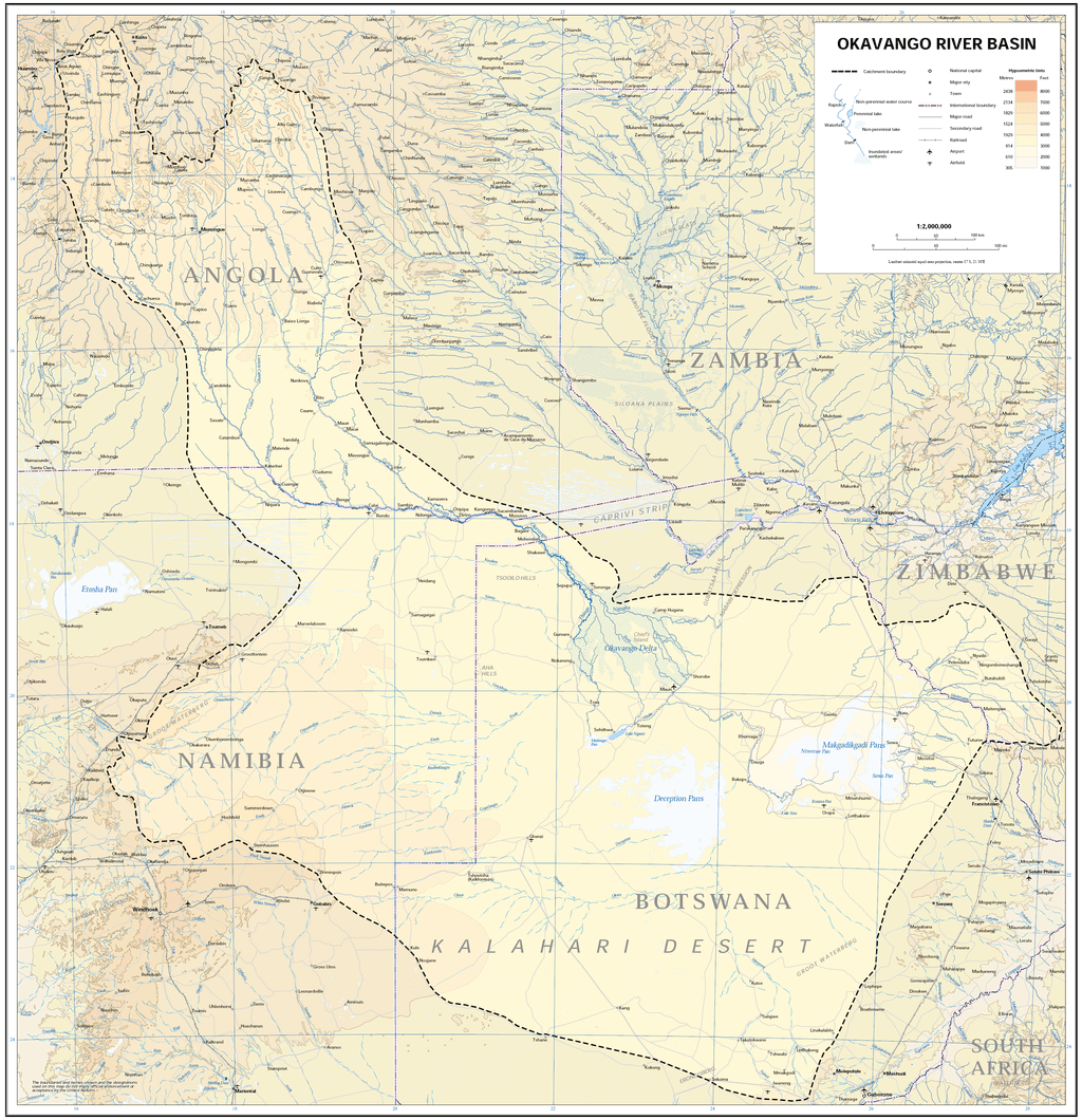 The above map outlines the Okavango River Basin and clearly depicts “the river that dies in the desert”. Interestingly, during colder periods in the earth’s history, the Okavango River would have been a tributary that fed the then massive Lake Makgadikgadi – now part of the Kalahari desert