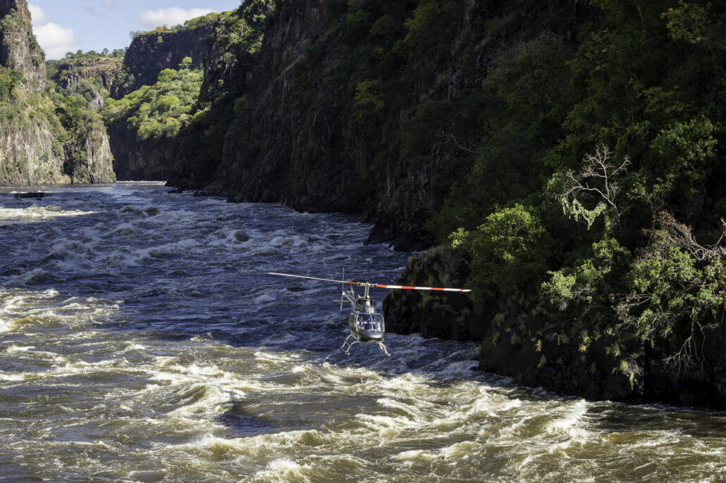 A helicopter trip along the river to the tumbling waters of the Victoria Falls is another awesome activity offered thanks to the spectacular Zambezi river