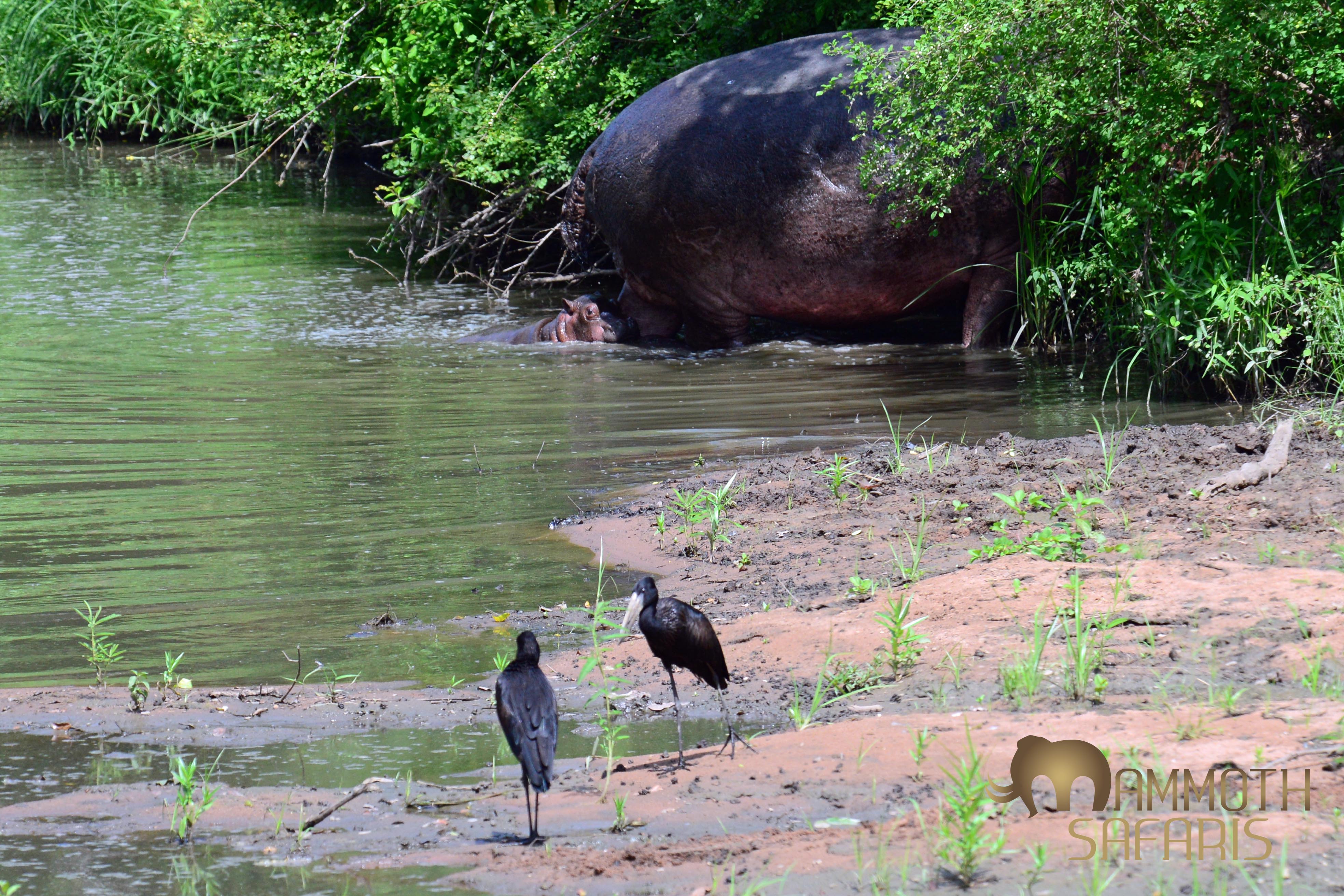One one of our many good walks, we had been sitting quietly watching the Openbills when the rocks moved and we got a glimpse of this tiny hippo behind its mother. This is no doubt the first of many that will be born along the mighty Rufiji during the rainy season.
