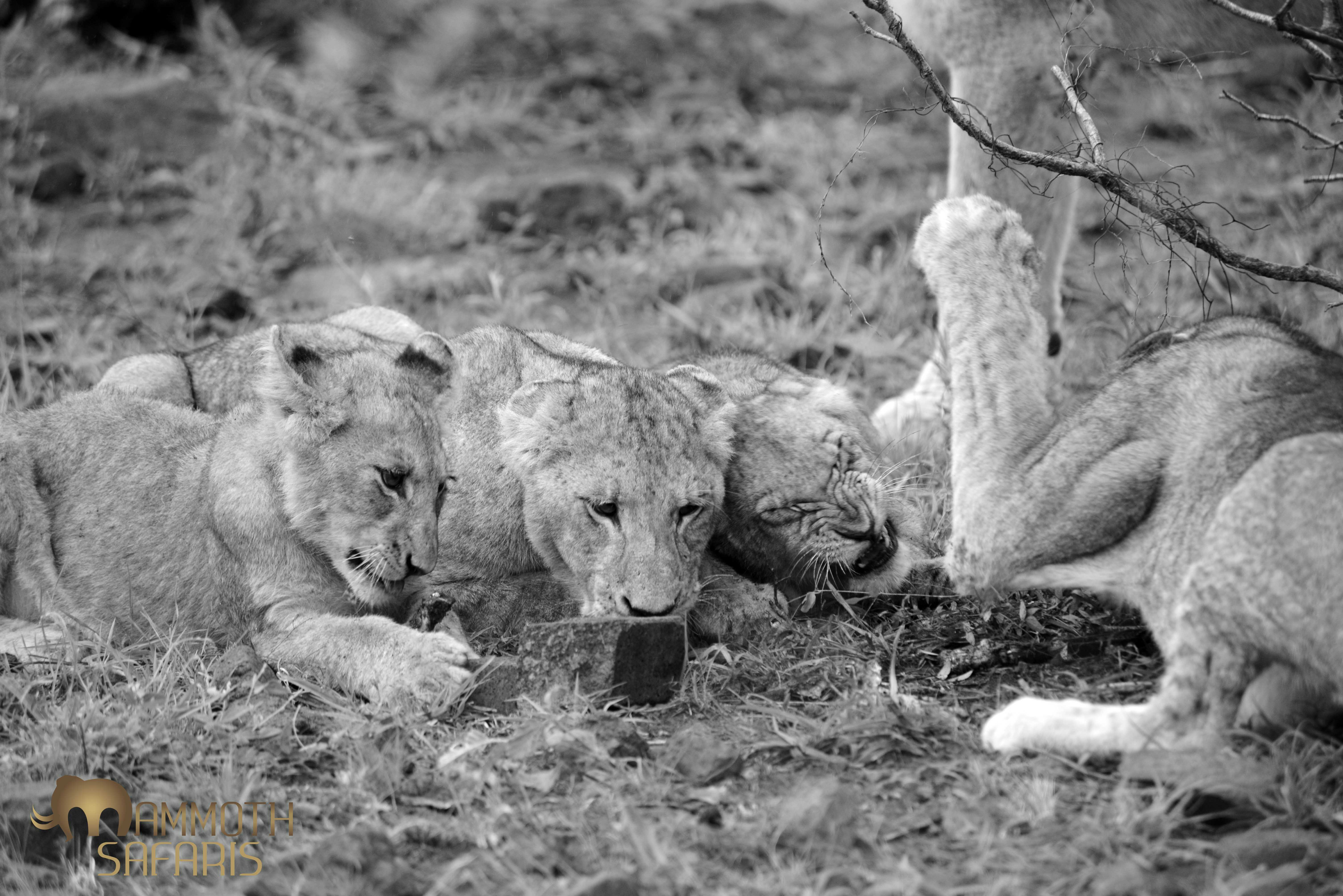 We found a rather lean-looking pride of lions on the Mozambique boundary. Here the cubs were fighting over sinew and a chance to lick the ground…desperate times indeed.