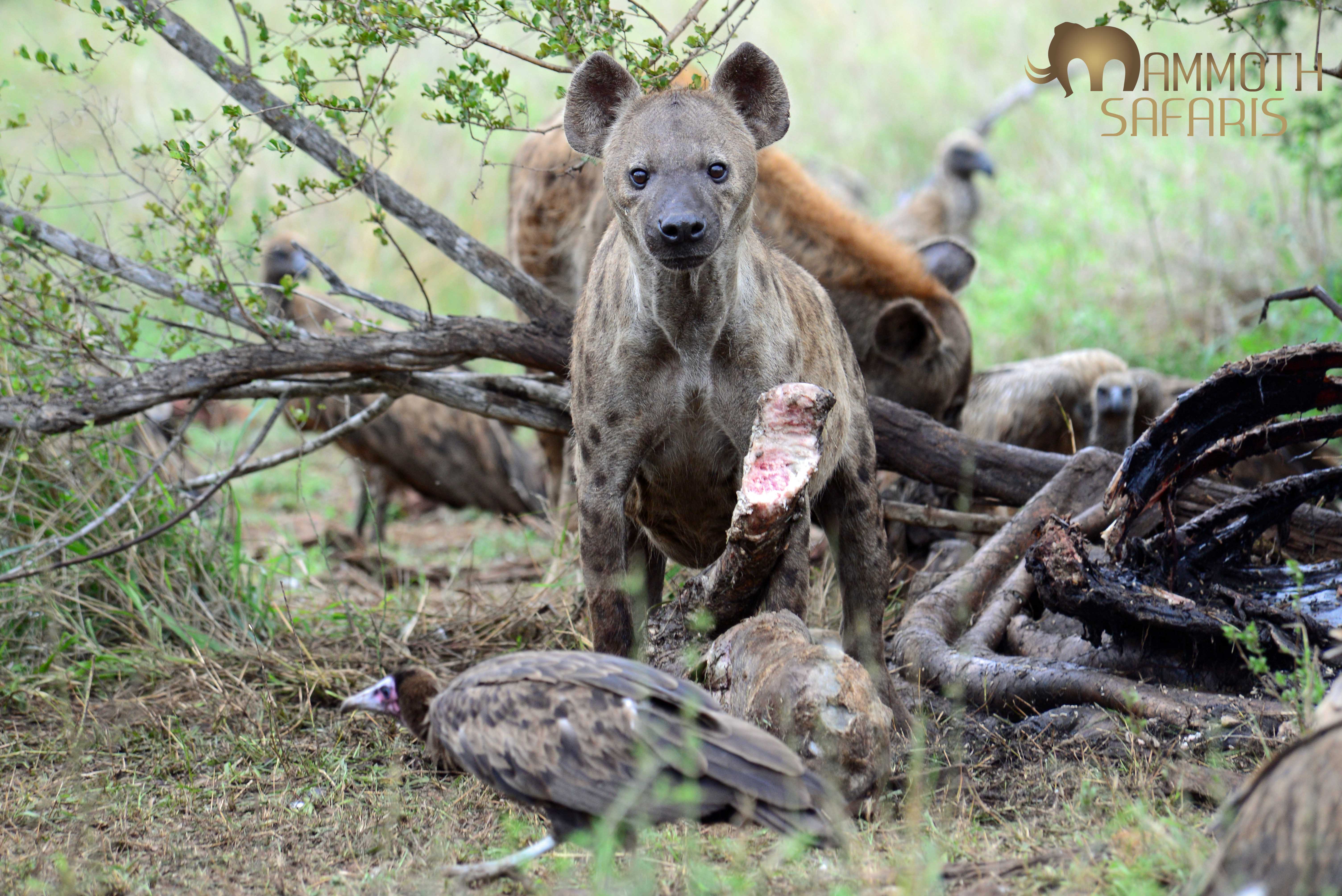 We sat for ages watching the hyenas devour the giraffe bone by bone – the vultures just waited for marrow to shoot out as they fed.